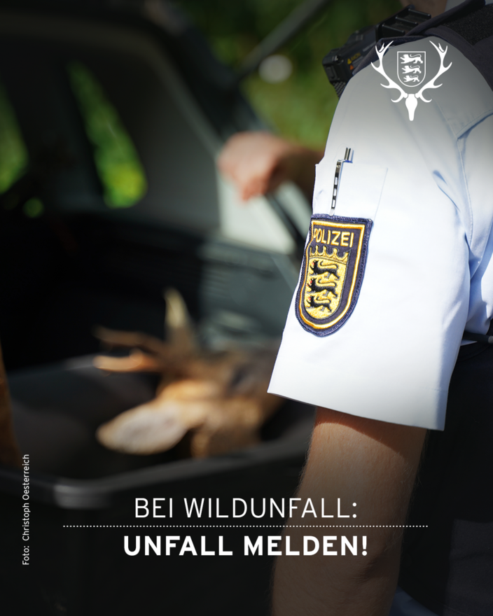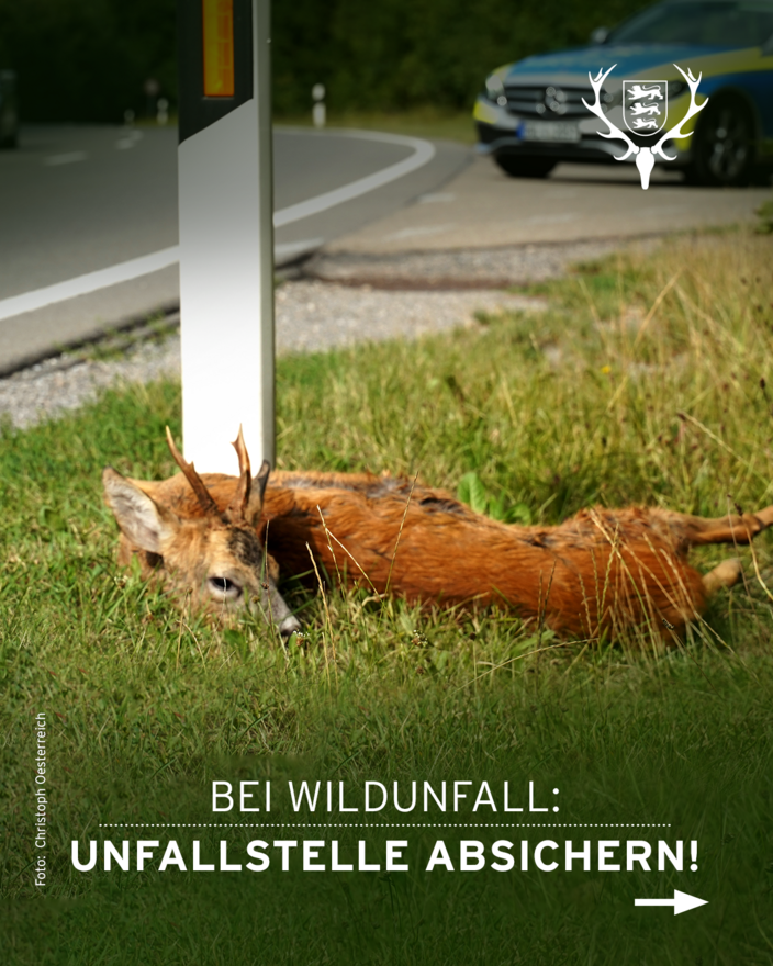 Den Unfall unverzüglich der Polizei melden, auch wenn das Tier geflüchtet ist.