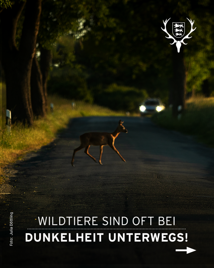 „Gerade Rehe sind in der Dämmerung besonders aktiv und oft nicht allein unterwegs. Auch Wildschweine können Straßen plötzlich queren. Wer jetzt besonders aufmerksam fährt, kann helfen, Unfälle zu vermeiden“, sagt René Greiner, Hauptgeschäftsführer des Landesjagdverbands Baden-Württemberg (LJV).