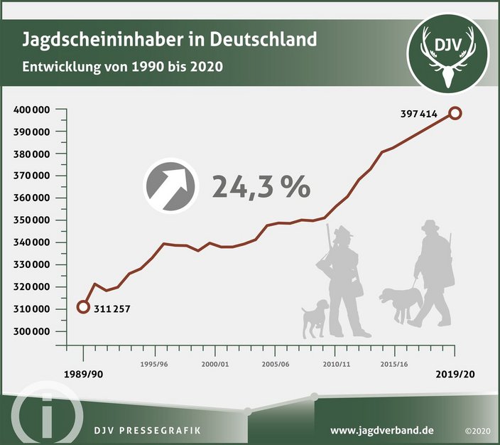 Auch in Baden-Württemberg nimmt die Zahl der Jagdscheininhaberinnen und Jagdscheininhaber seit 30 Jahren kontinuierlich zu und folgt damit dem Bundestrend.
